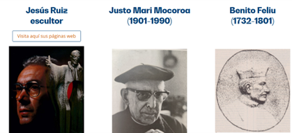 - Creadores de cultura “Son muchos los escolapios que han destacado en el mundo de la cultura: escultores, pintores, investigadores en distintas áreas del conocimiento… Son vidas dedicadas a aumentar nuestro saber y patrimonio, a divulgar ideas, sentimientos, nuestro propio ser. Nos hacemos eco aquí de algunos de ellos, sabiendo que hay muchos más que los que presentamos, que son Jesús Ruiz como escultor, Justo Mari Mocoroa como estudioso del Euskera, y Benito Feliú, pedagogo y gramático”.